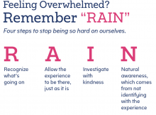 I am going through a series of guided meditations offered by Diana Winston of the UCLA Mindful Awareness Research Center. One of her meditations offers the RAIN technique